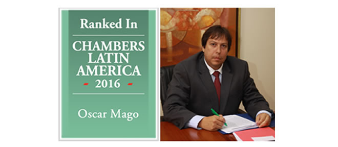 The leadership of Mr. Mago together to his management in front of the Peruvian Law firm OMC Abogados & Consultores has allowed that he appears in the ranking elaborated by Chambers and Partners. He also received the honour Leaders in the field 2016 in Intellectual Property. This award is shared with his Lawyers staff as the result of the work of all the team.
